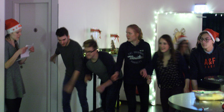 Um den Abend auch so abwechslungsreich wie möglich zu gestalten, spielten alle ein interaktives Weihnachtsquiz. Dabei traten wir in Gruppen gegeneinander an; es ging z. B. um das Erraten von Weihnachtsliedern, aber auch sportliche Aktivität war gefragt: Bei einem Spiel galt es, sich als schnellstes eine Süßigkeit am anderen Ende des Raumes zu ergattern; dabei ging es wild, aber auch spaßig zu. Völlig ausgepowert ließen wir den Abend ausklingen und genossen bei Weihnachtsmusik leckeren Punsch und Kakao. Alle Jahre wieder dasselbe – und langweilig? Auf keinen Fall!