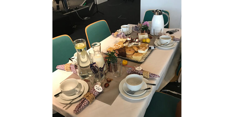 Endlich war es soweit. Wir konnten uns am 3. Oktober 2020 mit bis zu 50 Personen wieder treffen und es war ein Wiedersehen der Freude. Die Corona-Hygienemaßnahmen ließen uns kreativ werden und statt des gewohnten Frauenfrühstücks luden wir zu „Coffee and more“ ein. Herbstlich draußen und einladend gemütlich drinnen, erwartete die Frauen neben heißem Kaffee und Tee, eine Vielfalt an selbstgemachtem Kuchen, Muffins und Torten.