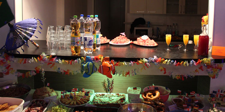 Am 17. Juni, letzter Tag der Jugend vor der langen Sommerpause, verwandelten sich die Gemeinderäume in einen Misch aus karibischen Flair, brasilianischen Tanzplatz und mediterraner Erlebniswelt für den Gaumen. Unter dem Motto „The Nations of the World“ startete die diesjährige getUp Sommerparty. Das Buffet ließ keine Wünsche offen: von deutschem Kartoffelsalat bis zum thailändischen Kokosreis war alles dabei.