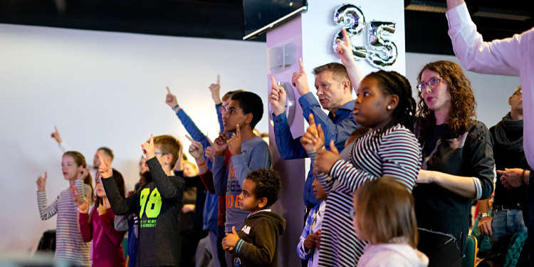 Der erste Höhepunkt des Nachmittags war das gemeinsame Luftballon steigen lassen. Mit den Luftballons schickten wir unsere Dankbarkeit und ein Segensgebet für unsere Stadt zum Himmel.