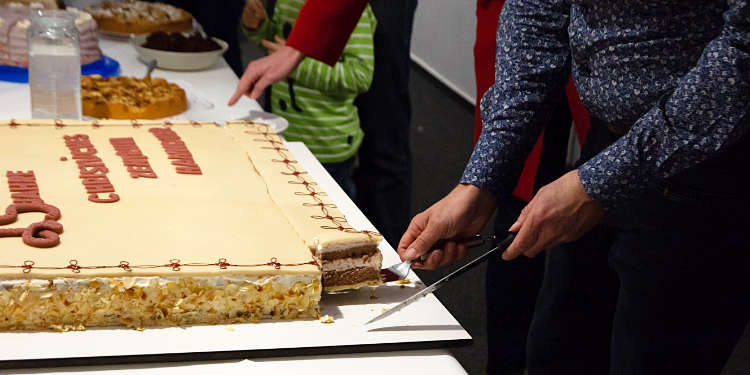 Anfangs wurde eine riesige Jubiläumstorte angeschnitten, zusammen mit einer Begrüßungsansprache von Pastor Thomas Bittmann. Danach ging es weiter mit guten Gesprächen und einem reichhaltigem Kuchen- und Tortenbuffet.