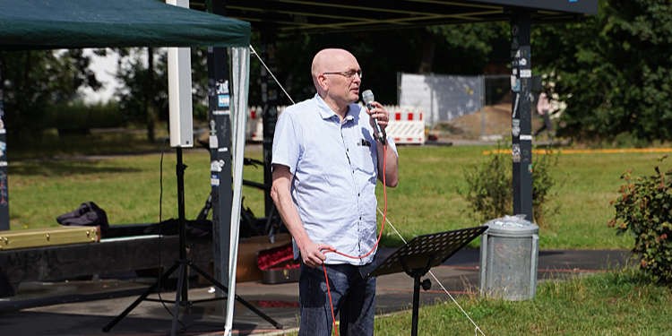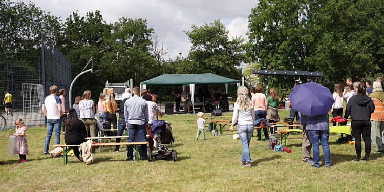 Unter freiem Himmel, bei sommerlichen Temperaturen, auf dem frisch gemähten Rasen des Festplatzes in Bothfeld luden Bierbänke zum Platznehmen und Ankommen ein. Endlich konnten wir uns alle wiedersehen – leibhaftig und von Angesicht zu Angesicht!